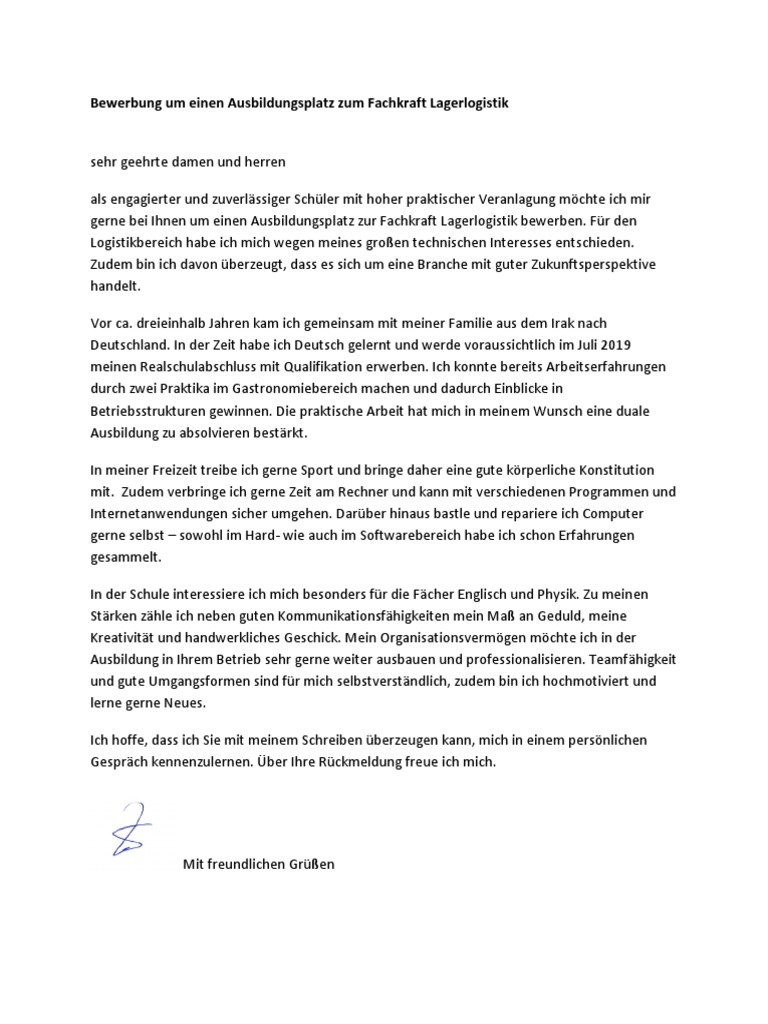 Bewerbung um einen ausbildungsplatz als fachkraft für lagerlogistik. Hier findest du unsere musterbewerbungen als fachkraft für lagerlogistik. Die muster dokumente wurden speziell für diesen beruf erstellt.